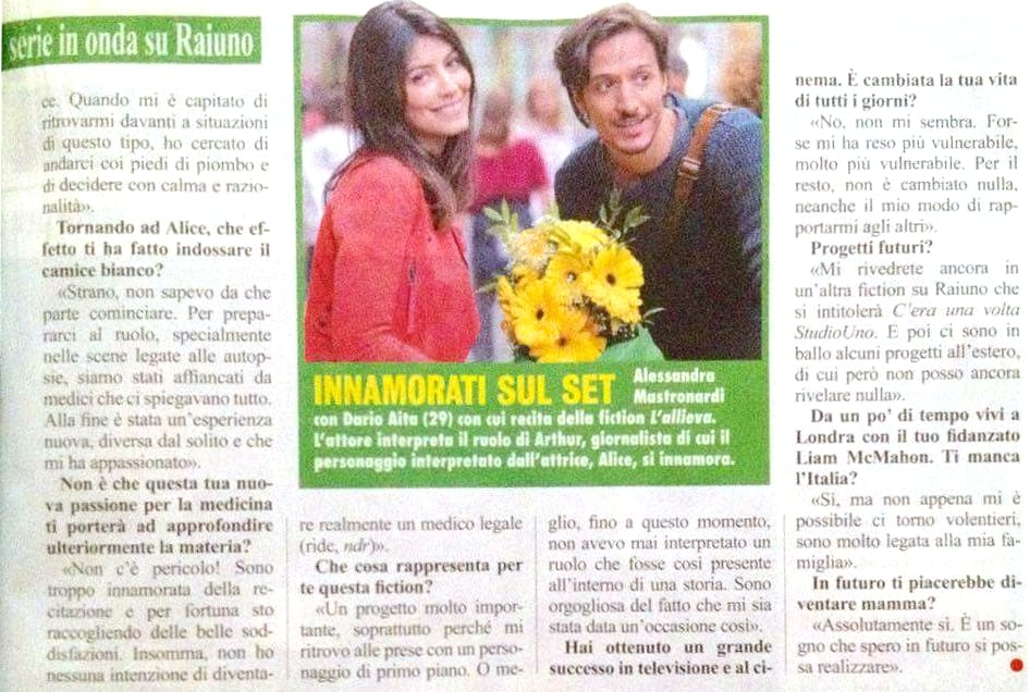 Buon mercoledì! Iniziamo subito la giornata con un’ampia rassegna stampa dedicata alla fiction “L’Allieva”, con Alessandra Mastronardi e Lino Guanciale: abbiamo infatti diciassette fantastici articoli presi da varie riviste e quoditiani, su cui sono presenti anche tante foto inedite!