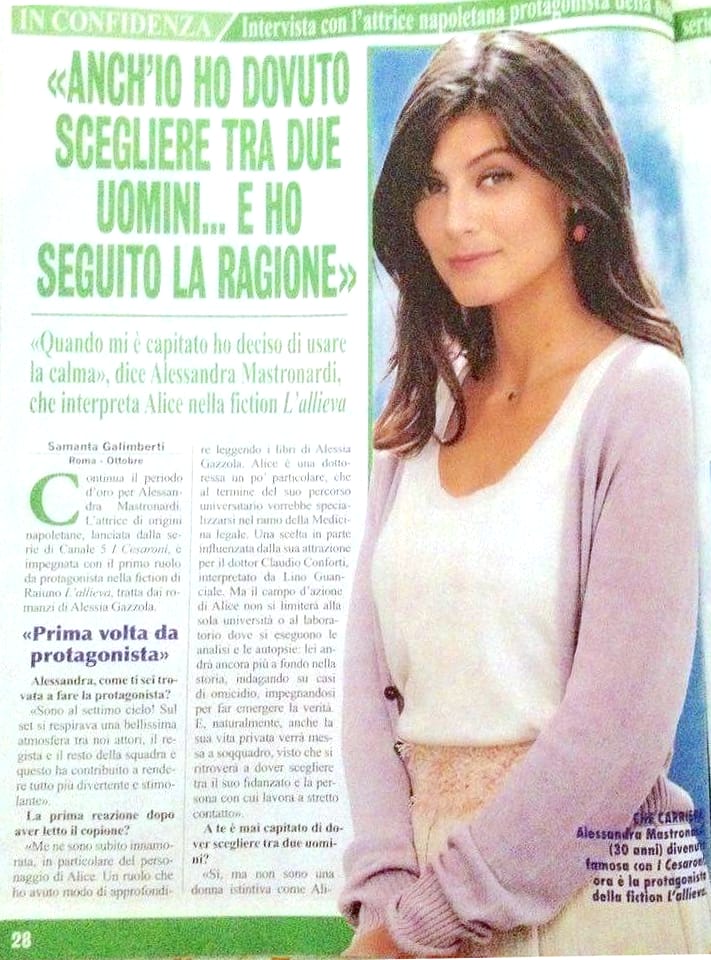 – DiPiù Tv (N.38 del 27 settembre 2016, nell’ultima foto Lino Guanciale parla della sua esperienza lavorativa avuta con Alessandra sul set)